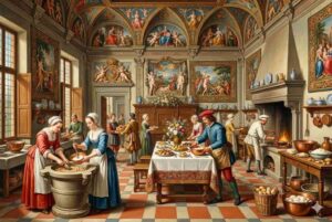 当時のマカロンは、現在のものとはずいぶん姿が違っていました。クリームは挟まれておらず、アーモンドパウダー、卵白、砂糖を混ぜて焼いた、素朴な「アーモンドクッキー」のようなお菓子だったと言われています。美食の国イタリアの技術が、フランスの宮廷文化と出会うことで、マカロンは新しい命を吹き込まれました。カトリーヌが持ち込んだフォークや香水とともに、この小さな焼き菓子もまた、フランスの食文化に「ルネサンス(再興)」をもたらしたのだと感じました。当時の貴族たちは、この異国の洗練された甘みに、どれほど驚き、魅了されたことでしょうか。
